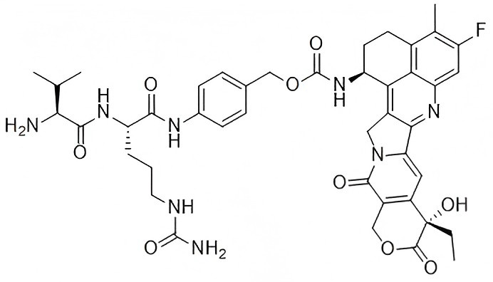 [4-[[(2S)-2-[[(2S)-2-amino-3-methylbutanoyl]amino]-5-(carbamoylamino)pentanoyl]amino]phenyl]methyl N-[(10S ,11.020 ,13.06 ,14.04 ,15-diazahexacyclo[14.7.1.02 ,16 ,18 ,20(24)-heptaen-23-yl]carbamate ,23S)-10-ethyl-18-fluoro-10-hydroxy-19-methyl-5 ,24]tetracosa-1 ,6(11) ,9-dioxo-8-oxa-4 ,12 ,14 |